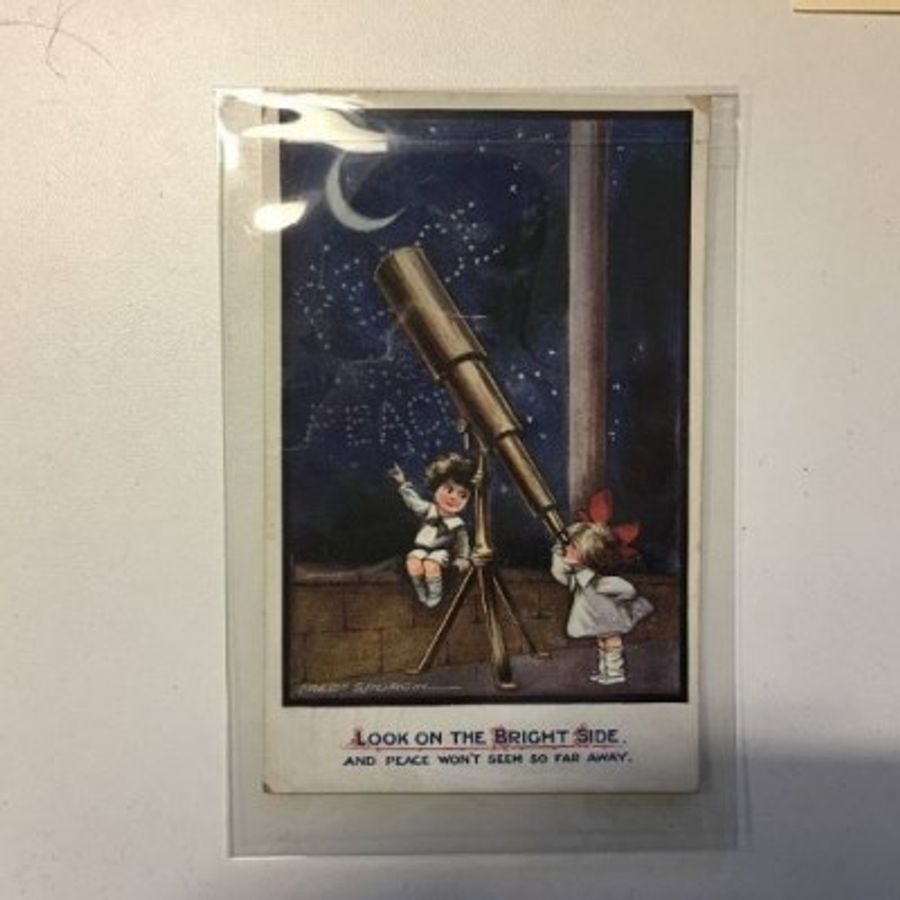 The Space box is quite abstract and varied with what it contains, but with the objects, the guidance notes and a little imagination they can be used to explore more than what the objects themselves represent. The postcard for example can be used to talk about the First World War, as it is from that era and shows the children looking to the stars for a sign of peace. It can also be used to talk about Astrology too! The birthday card is also a good example of this as it can be used to talk about the Space Race.