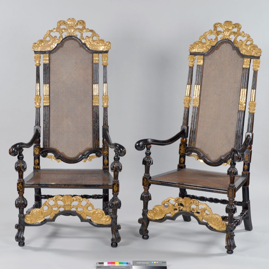 Finally, the seating furniture. We infer from the bill that there were chairs with upholstered seats and backs (the bill mentions covering the seats and backs). However, in October 1702 the bill mentions varnishing cane seating. This was a popular form of chair in the late 17th and early 18th centuries. Were these all for the same room, or did the caned chairs replace the upholstered ones?