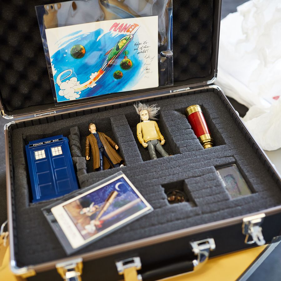 A box with Dr Who related objects inside from Leeds Discovery Centre